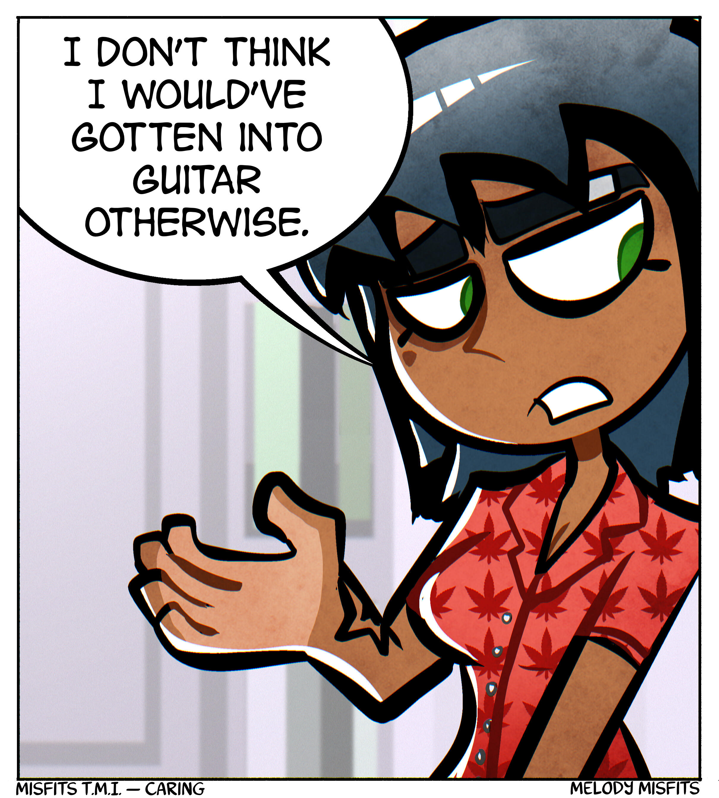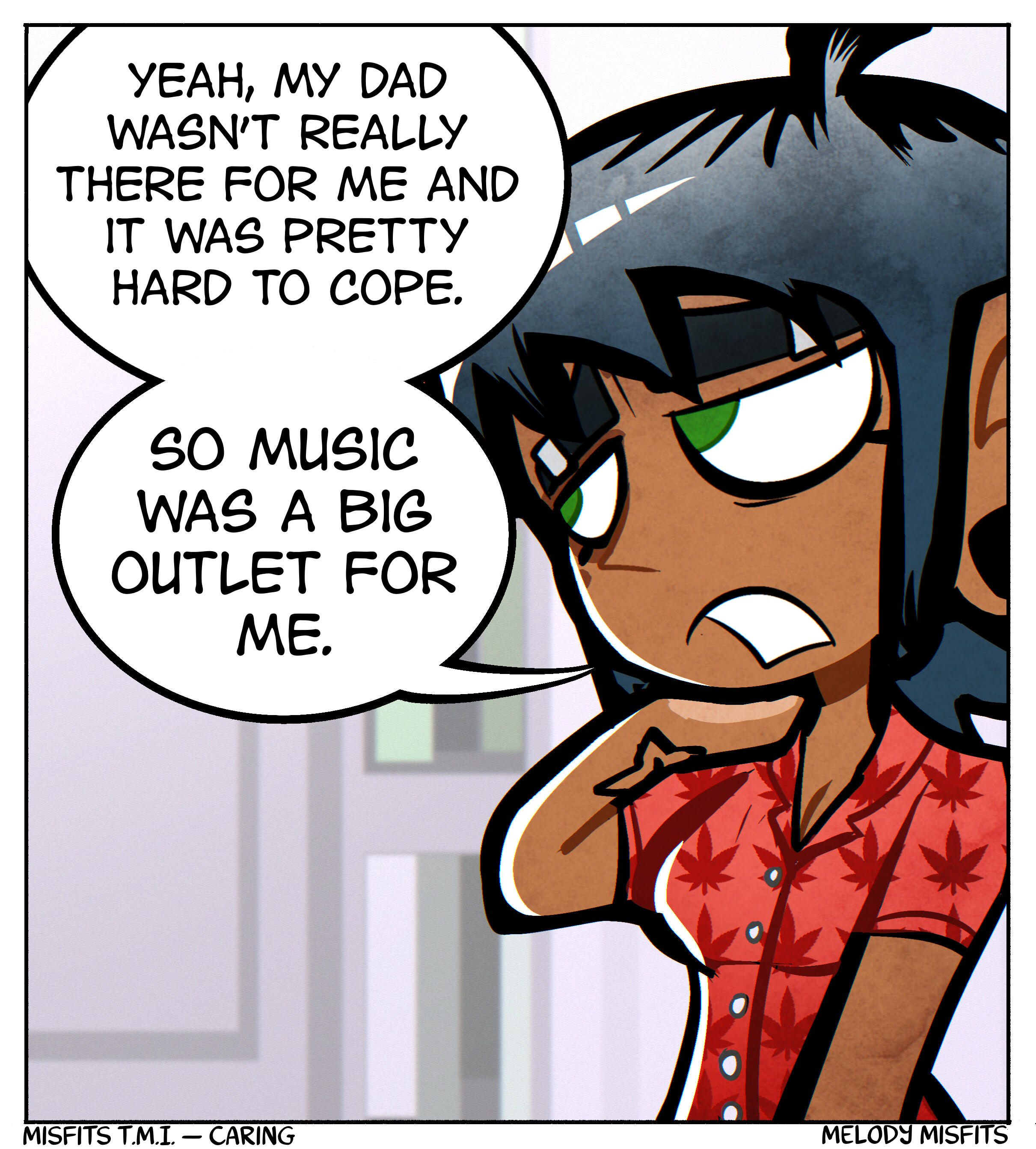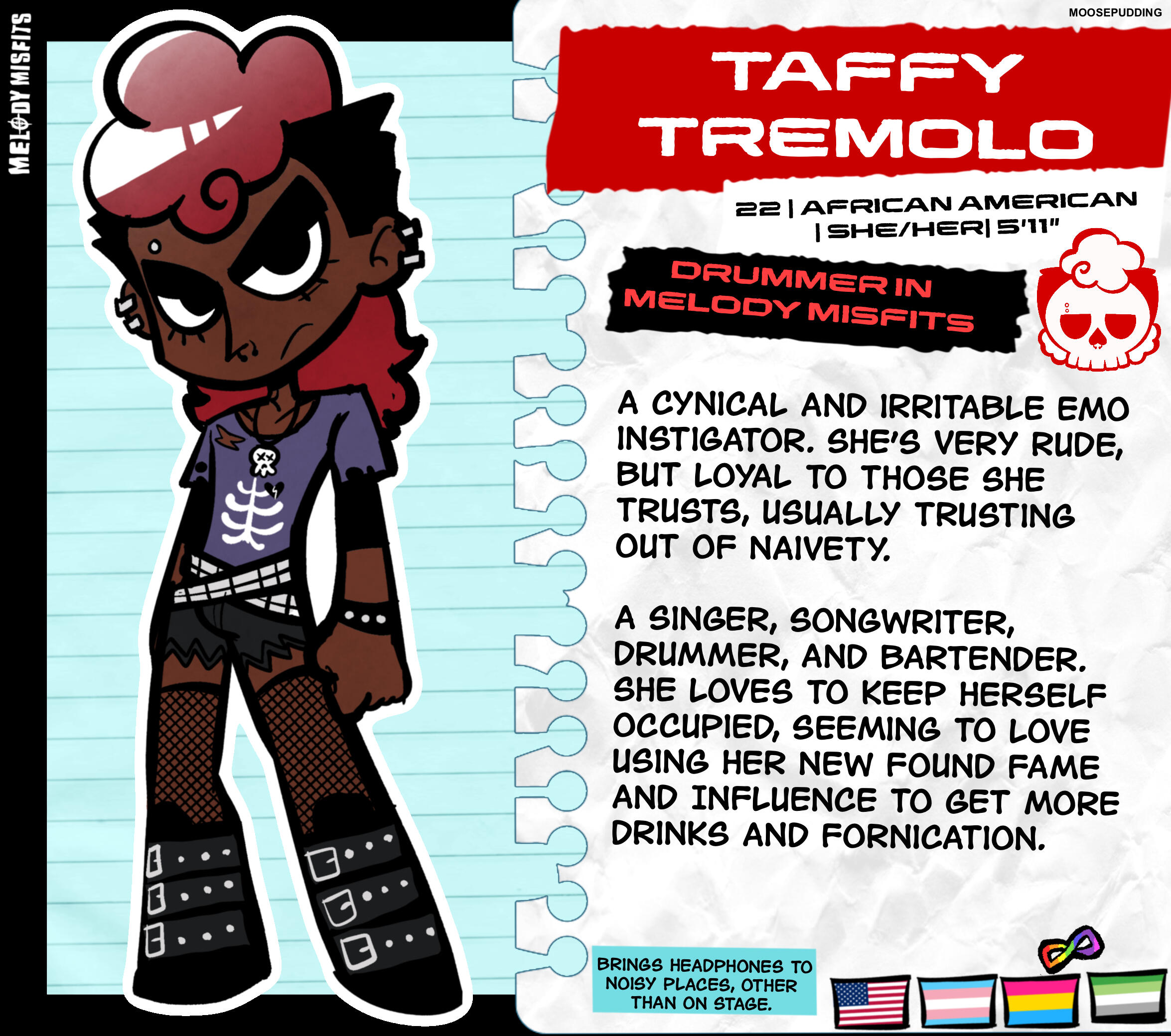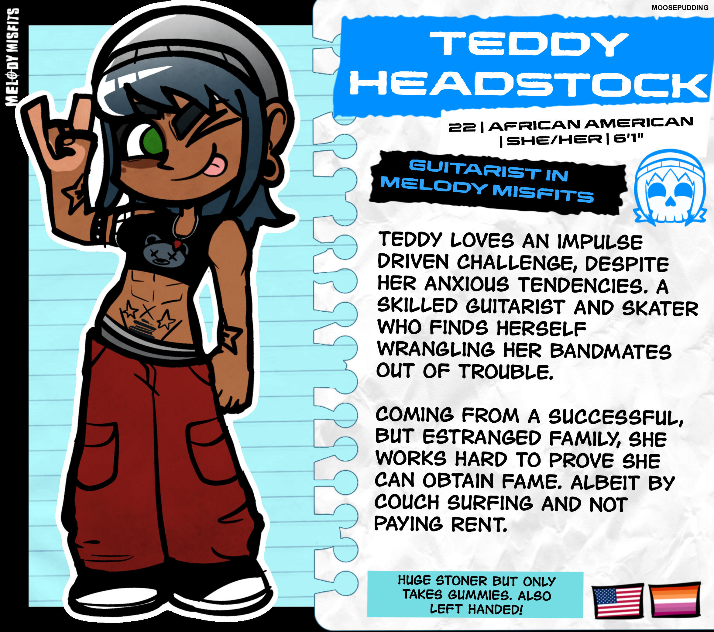 Teddy Headstock—professional freeloader—just got kicked out of her band, and apartment. Broke and aimless at 22, she’s ready to give up her punk rock dream. Until Pippa Overdrive and Taffy Tremolo crash into her life. A famous guitarist with a dark side hustle, and an abrasive drummer-bartender. Pippa is ready to give their new band a real shot at success, but one wrong note and her double life can come crashing down. Taking the whole band with her. Find out how the band came to be, and what they’ll risk to stay together!